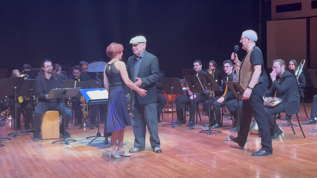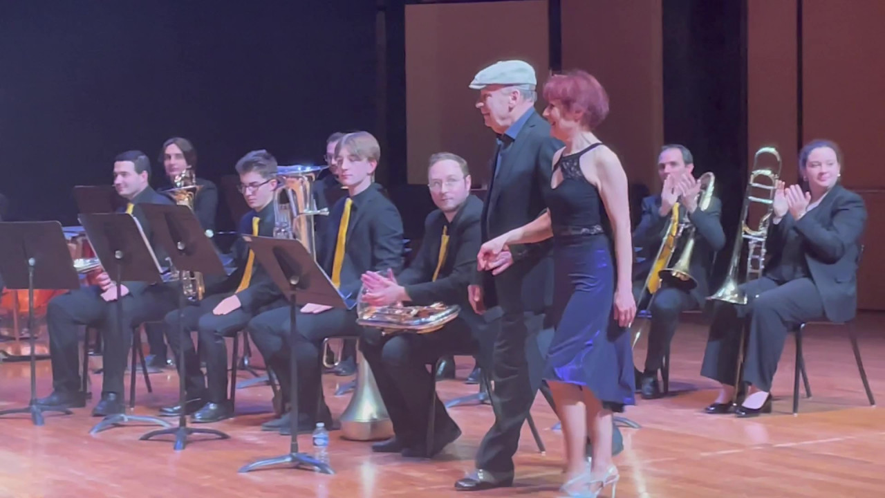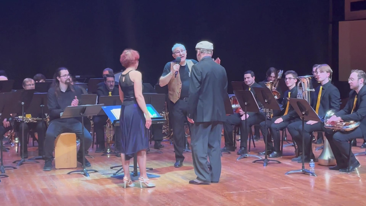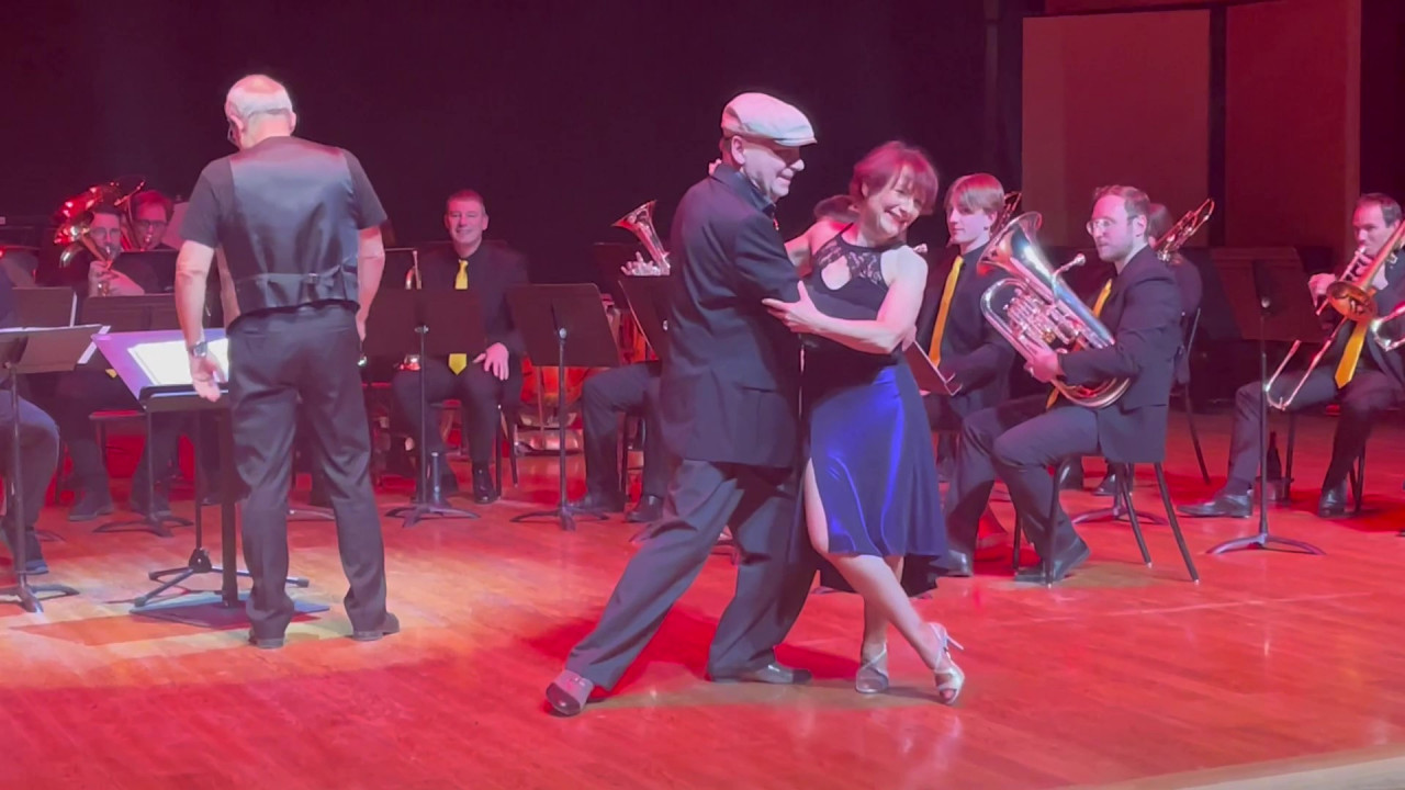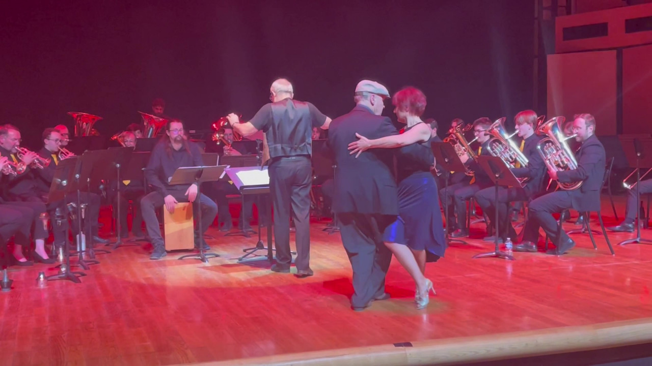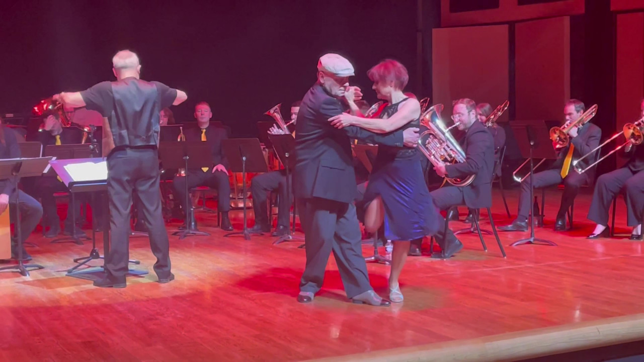 Transformer le concert de fin d'année du Brass Band en introduisant pour la première fois la danse du Tango argentin, c'était la superbe idée SURPRISE du chef d'orchestre. Pendant 8 mn environ, nos danseurs Brigitte et Francis ont donc entièrement improvisé sur la scène du grand amphithéâtre quasi complet du Conservatoire Régional de Musique de Reims.