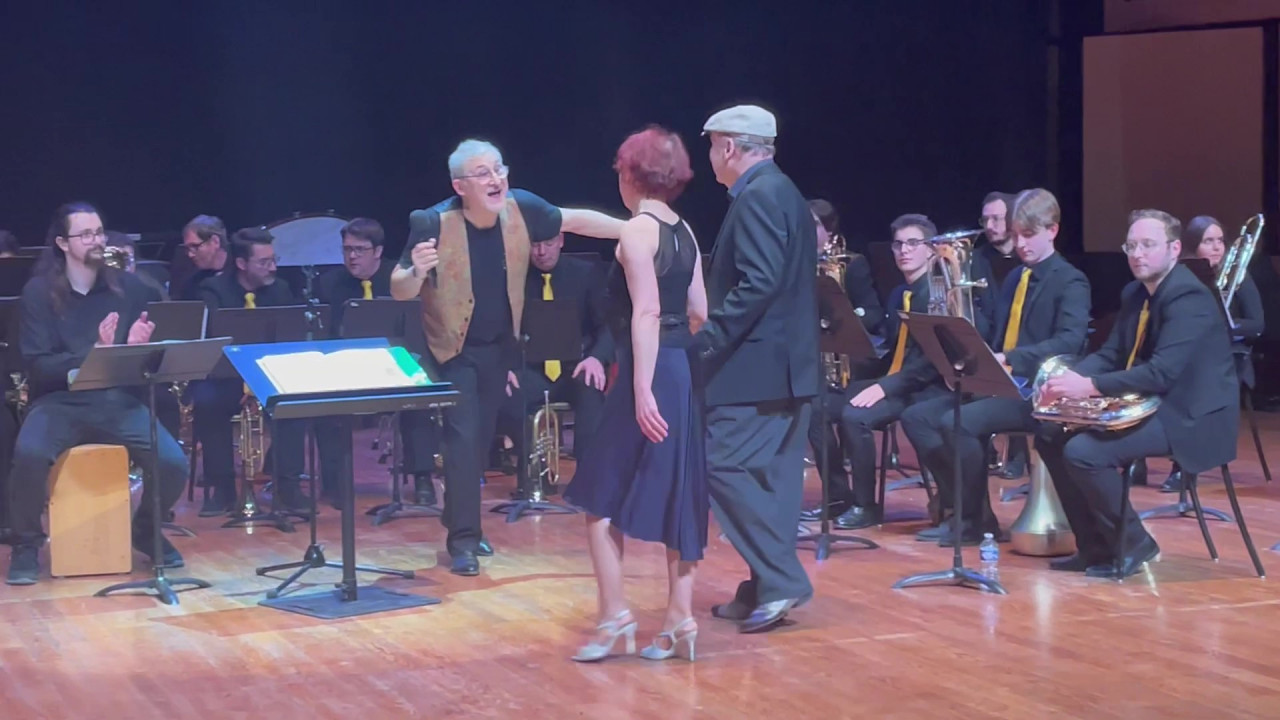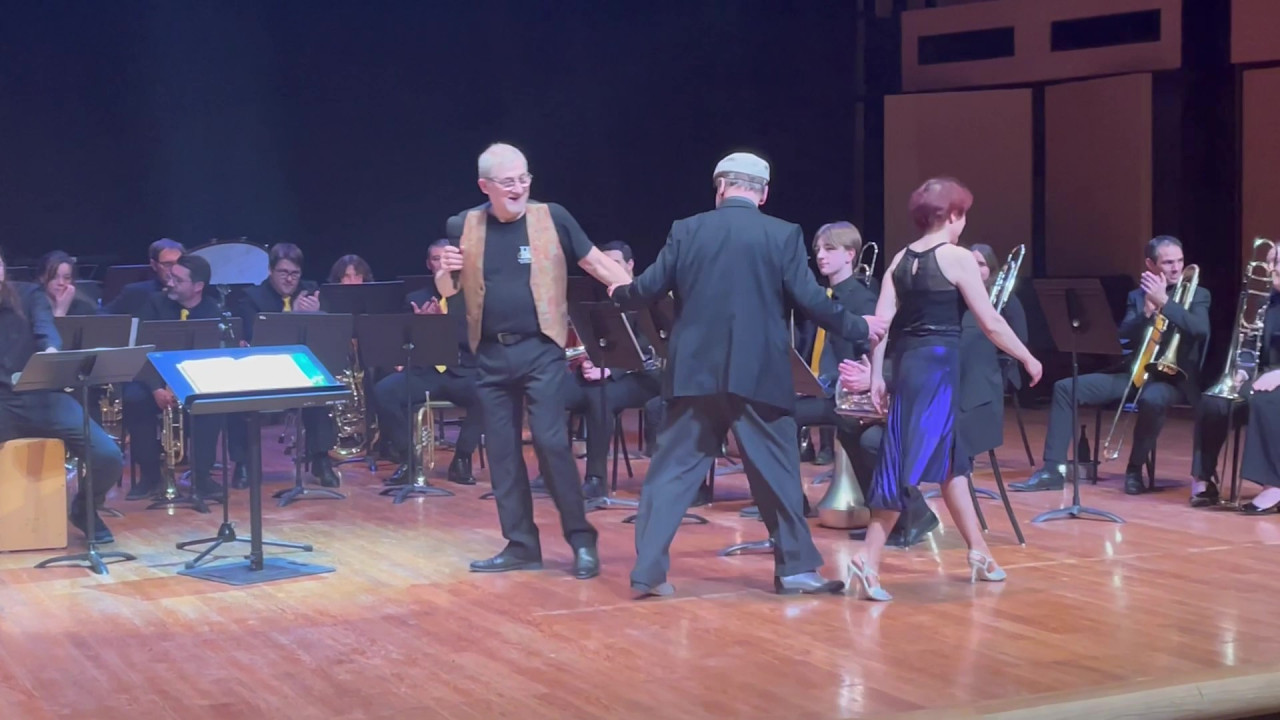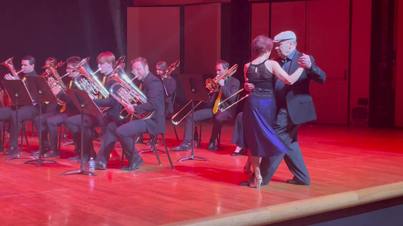 Transformer le concert de fin d'année du Brass Band en introduisant pour la première fois la danse du Tango argentin, c'était la superbe idée SURPRISE du chef d'orchestre. Pendant 8 mn environ, nos danseurs Brigitte et Francis ont donc entièrement improvisé sur la scène du grand amphithéâtre quasi complet du Conservatoire Régional de Musique de Reims.